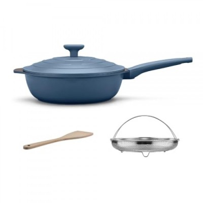 LIGTSPCE All-in-One Pan,Always Nonstick Multipurpose Saute pan,Large Skillet with Strainer,Deep Frying Pan with Lid(11-inch), PFOA Free chef’s pan,Dishwasher and Oven Safe (Cerulean)