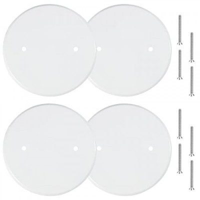 4팩 5인치 천장 커버 플레이트 금속 평면 원형 전기 커버 나사가 있는 빈 원형 벽 플레이트 천장 팬 스위치 캡 커버, 구멍 간격 2.75인치, 흰색(3-1/2인치 전기 상자용