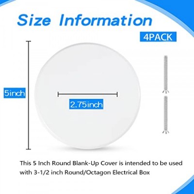 4 Packs 5 Inch Ceiling Cover Plate Metal Flat Round Electrical Cover Blank Circle Wall Plate with Screws Ceiling Fan Switch Cap Cover, Holes Are Spaced 2.75 Inch, White (For 3-1/2 inch Electrical Box)