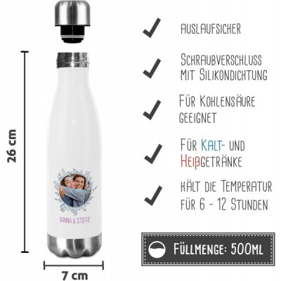 PR Print Royal Trinkflasche Edelstahl selbst gestalten mit Foto im Rahmen & Text - Thermosflasche, Wasserflasche BPA-frei, Camping, Schule, Sport I Personalisiertes Geschenk, Blumenrahmen 1, 500 ml 500 ml Blumenrahmen 1