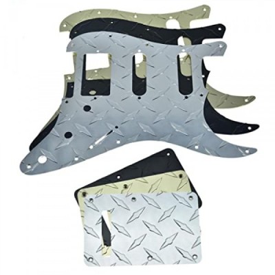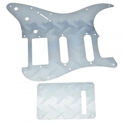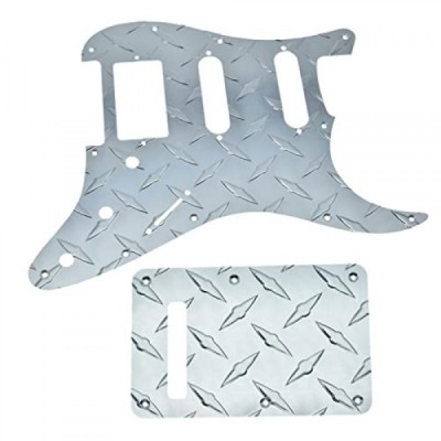 KAISH Premium Diamond Plate 11 Hole Strat HSS Pickguard Aluminum Scratch Plate and Backplate Tremolo Trem Cover with Screws for American/Mexican FD Stratocaster Silver
