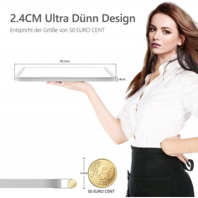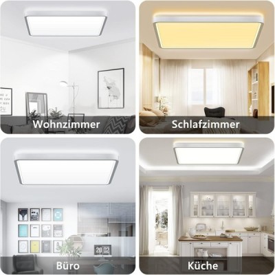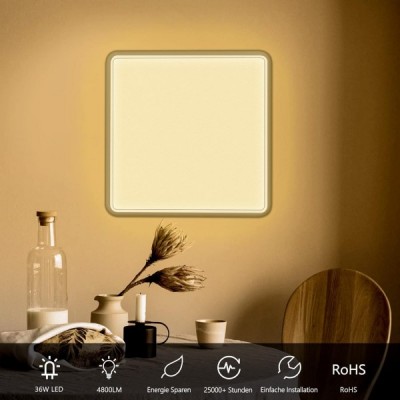 bedee LED 천장 조명 평면, 36 W 4800 LM LED 전구 천장 조명, 2.4 cm 초박형 조절 가능 3000 K / 4500 K / 6500 K IP44 현대 램프 천장 거실, 침실, 주방, 30 x 30 cm 화이트 ohne Fernbedienung