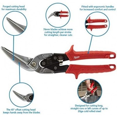 Milwaukee MHT48224538 Offset Metal Aviation Snips Left Extra Long 스트레이트 컷