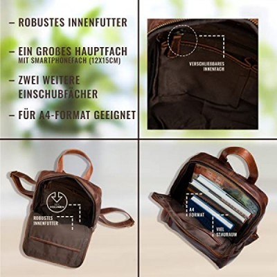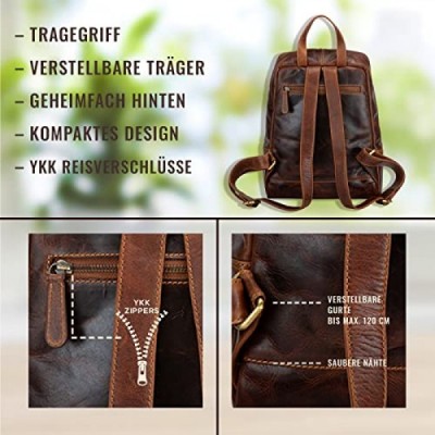Corno d´Oro BP818 Premium Backpack Women's Leather Elegant I Handmade Leather Backpack Vintage Laptop Backpack for 14 Inch Laptop I Backpack Daypack Brown, brown, m