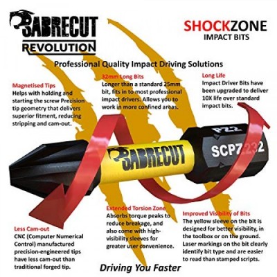 4피스 SabreCut SCRK1 마그네틱 2 23/64 및 5 63/64 전문 임팩트 비트 홀더, Dewalt, Milwaukee, Makita, Bosch 및 기타 제품과 호환되는 2 x 1 7/64 PZ2 스크루드라이버 임팩트 비트 포함