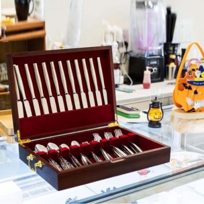 GENRICE 은제품이 없는 나무 은제품 상자, 은제품을 위한 은제품 상자 보관함, 손잡이와 펠트 안감이 있는 은제품 케이스, 식기 12세트를 위한 식기류 상자