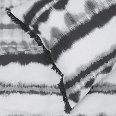 Sleepdown Tie Dye Geo Mono Black White Reversible Duvet Cover Quilt Tassel Pillow Cases Bedding Set Soft Easy Care - King (230cm x 220cm)