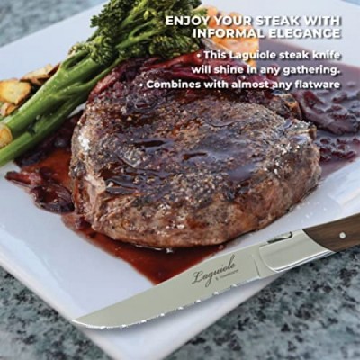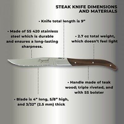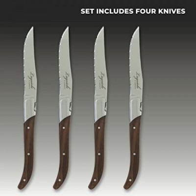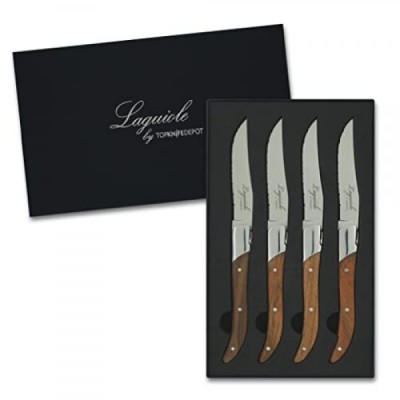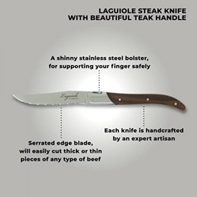 TopKnife Laguiole Steak Knife Set – Serrated Blade – Teak Handle - Set of 4