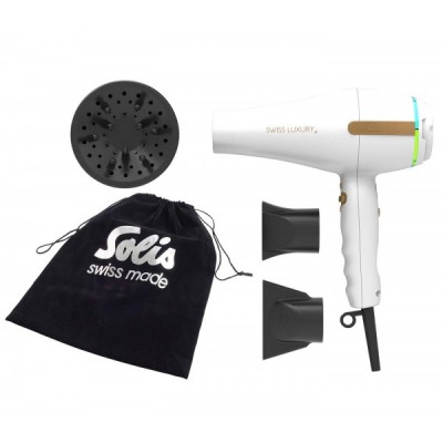 솔리스 스위스 럭셔리 3800 헤어 드라이어 화이트, 전문가용 헤어드라이어, 스위스 품질, 이온 기능, 11단계 속도 설정, 3가지 온열 기능 및 냉풍 설정 스위스 럭셔리 화