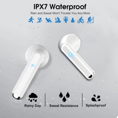 OYIB Bluetooth 5.3 Kopfhörer, Kopfhörer Kabellos Bluetooth mit 4 ENC Mikro, 2023 Neue Immersiver HiFi Bluetooth Kopfhörer, Touch Control Ohrhörer mit LED Anzeige, 25H, IPX7 Wasserdicht Earbuds USB-C Weiß