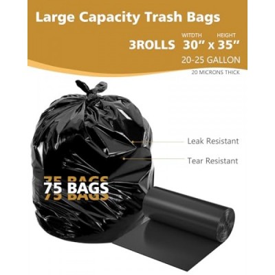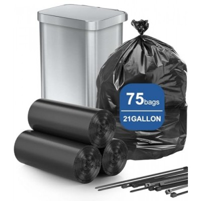 75 Count 21 Gallon Trash Bags for Kitchen, AYOTEE Big Black Trash Bags 21 Gallon Garbage Bags with Zip Ties, 30"x 35" Extra Large Trash Bags Plastic Garbage Bags for Paper, Food Waste, Lawn and Leaf