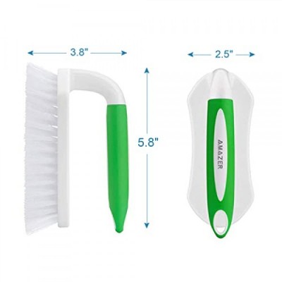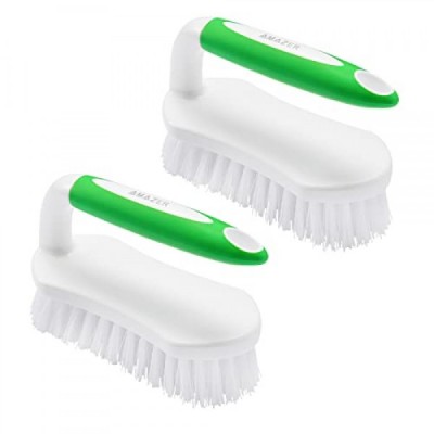 Amazer Scrub Brush for Cleaning Comfort Grip Shower Scrubber Stiff Bristles with Handle Heavy Duty Cleaner Brush for Tub Sink Carpet Floor - Pack of 2 (Green+Green)