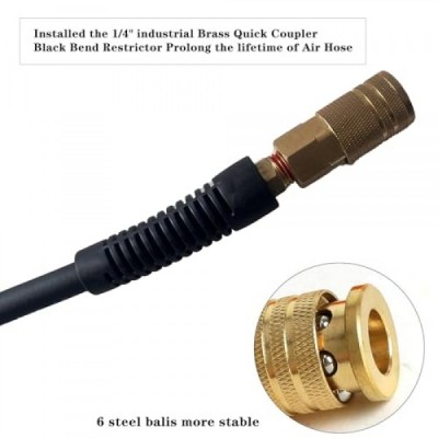 Air Hose 1/4 in x 25 ft, Heavy Duty, Lightweight, Kink Resistant, Hybrid Air Compressor Hose with 1/4 in Solid Brass Male Fittings, Bend Restrictors, 300 PSI (25FT, Black)