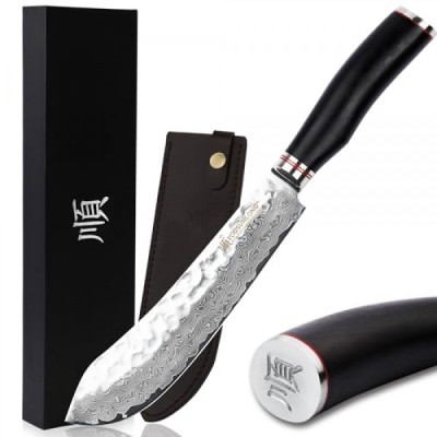 YOUSUNLONG Breaking Knife Bull Nose Butcher Knife 8" Japanese 67 Layers Hammered Damascus Steel with Natural Leadwood Handle