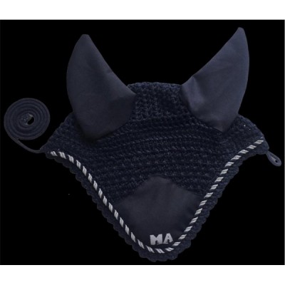 Majestic Ally Handmade Fly Veil with Ear Net and Braided Rope for Horse (Navy) Navy