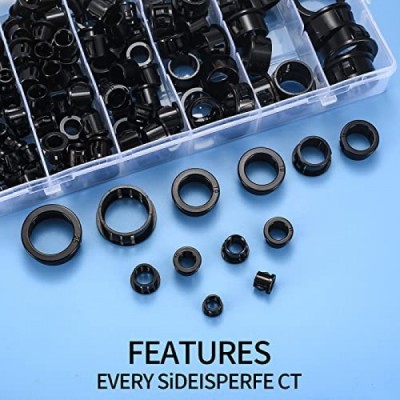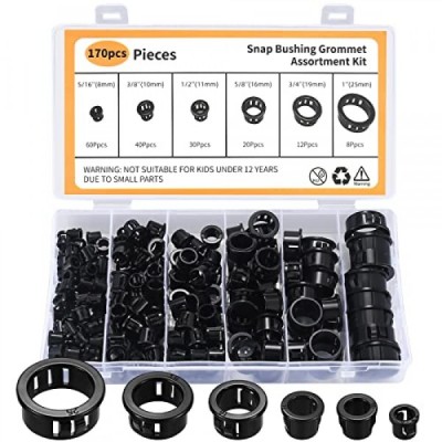 170 Pcs Cable Snap Bushing Grommets, Black Round Nylon Snap in Cable Grommet Protector, 5/16 3/8 1/2 5/8 3/4 1 Cable Snap Hole Plugs Locking Bushing Assortment Kit