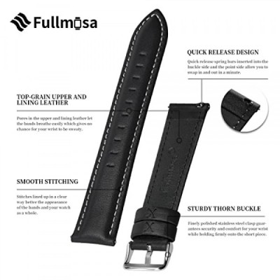 Fullmosa 22mm Leather Watch Bands Compatible with Samsung Galaxy Watch 46mm,Galaxy Watch 3 45mm,Gear S3 Frontier/Classic,Huawei Watch GT,Garmin Vivoactive 4/Forerunner 945,Black