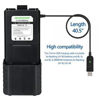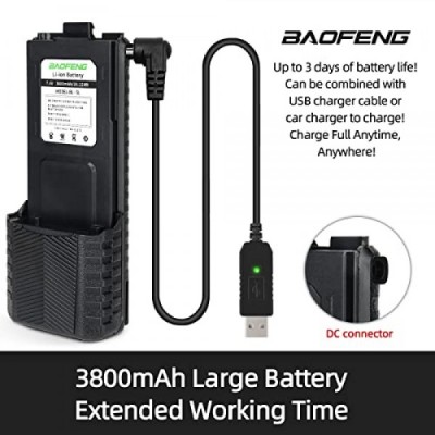 BAOFENG 2Pack BL-5 3800mAh Extended Battery Walkie Talkie UV-5R BF-8HP UV-5RX3 RD-5R UV-5RTP UV-5R MK2 MK3X MK5 Plus Etc (2Pack 3800mAh Battery+ USB Charger Cable)