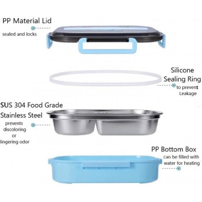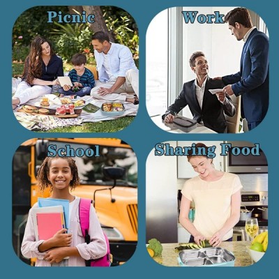 Merecho 도시락 도시락 상자, 칸막이와 칼 붙이가있는 스테인리스 도시락, 전자 레인지 및 식기 세척기를위한 1200ml 보관 상자, 학교 작업 피크닉 여행