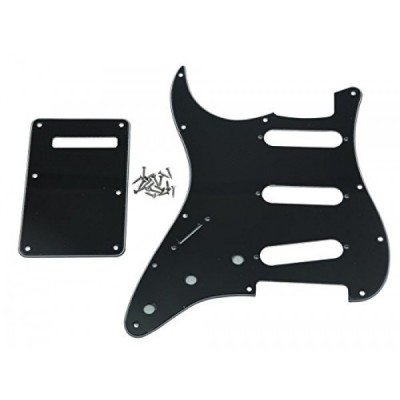 KAISH Lefty ST/Strat Style SSS Pickguard Left Handed Tremolo Trem Cover Back Plate for USA/Mexico Stratocaster/Strat Black 3 Ply