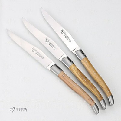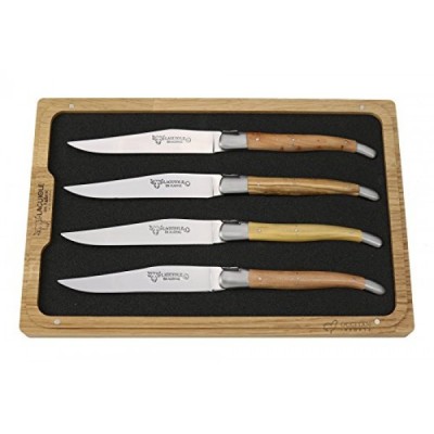 Laguiole en Aubrac Luxury Fully Forged Full Tang Stainless Steel Steak Knives 4-Piece Set with Mixed French Wood Handle, Stainless Steel Brushed Bolsters