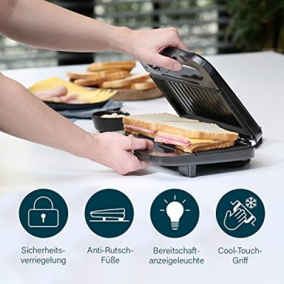 Princess Supreme 127005 샌드위치 메이커 - 붙지 않는 그릴 플레이트 - 출력 750W, 01.127005.01.001, 검정색