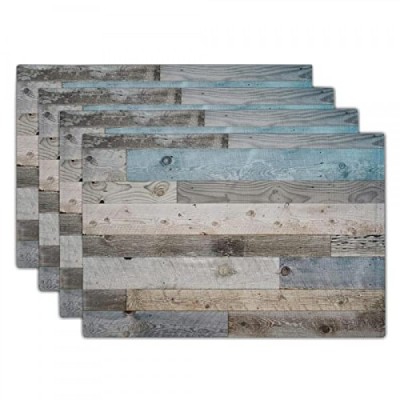 Giwawa 소박한 나뭇결 플레이스 매트 4개 세트, 빈티지 헛간 나무 리넨 테이블 매트, 농가 컨트리 스타일 롯지 식사용 내열성 세탁 가능 장소 매트 주방 파티 휴일 장식 1