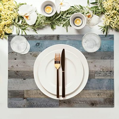 Giwawa Rustic Wood Grain Placemats Set of 4, Vintage Barn Wooden Linen Table Mat, Farmhouse Country Style Lodge Heat Resistant Washable Place Mats for Dining Kitchen Party Holiday Decor 12x18Inch