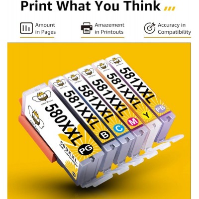 CMYBabee PGI-580XXL CLI-581XXL Ink Compatible for Canon PGI-580 CLI-581 Ink Cartridge use for Canon PIXMA TS8150 TS8151 TS8152 TS8250 TS8251 TS8252 TS8350 TS8351 TS8352 TS9150 TS9155 (6 Pack)