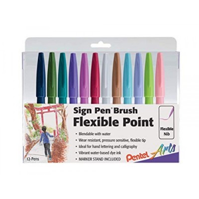 Pentel Arts Sign Pen Brush Tip, Assorted Colors, 12 Pack Box (SES15C2PC12)