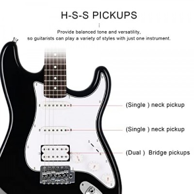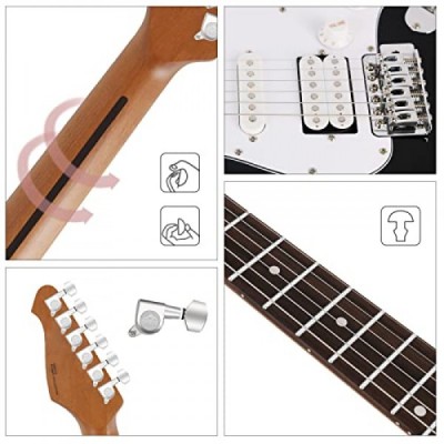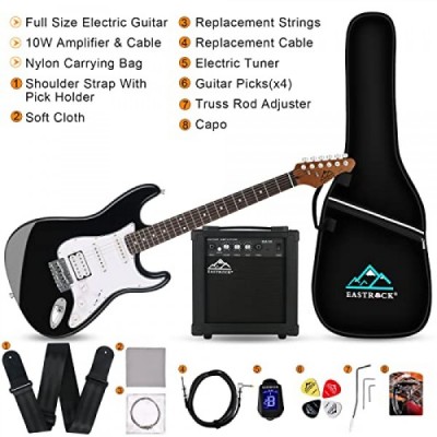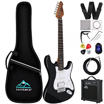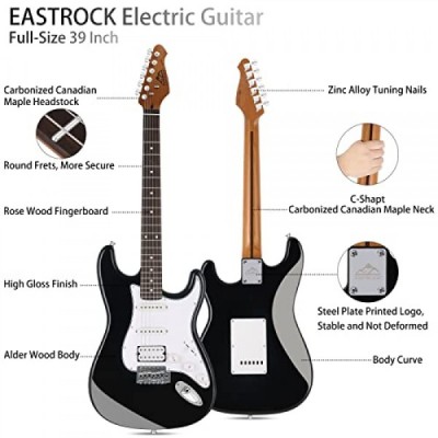 EASTROCK Electric Guitar 39 inch Full Beginner Starter kit Full Size with 10w Amp, Package All Accessories, Tuner, Strings, Picks, Tremolo Bar, Strap, and Case Bag (39 Right Handed, Black)