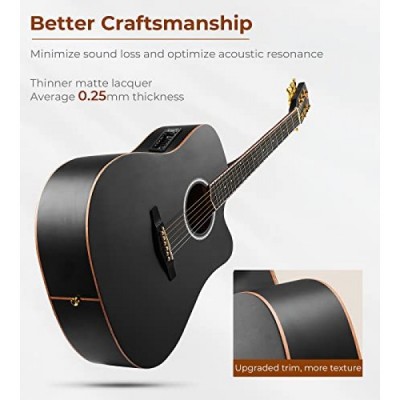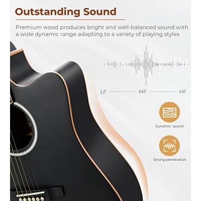 Vangoa Electric Acoustic Guitar Kit for Beginners Adults Full Size Cutaway Acoustic Guitar Bundle Set with Built-in Pickups Bag Tuner Strap Capo Picks Cable, Matte Black