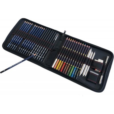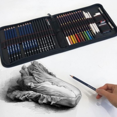tvfly 수채화 크레용, 흑연 및 목탄 연필 및 액세서리가 포함된 41피스 연필 드로잉 세트, 초보자, 아티스트, 학생, 성인을 위한 최고의 드로잉 41피스(1팩)