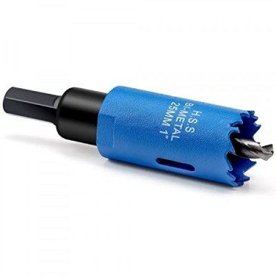 1 Inch Hole Saw, 25 mm HSS Bi-Metal Hole Cutter with Hex Shank Drill Bit Adapter for Wood Plastic Drywall Fiberboard and Soft Metal Sheet, Blue