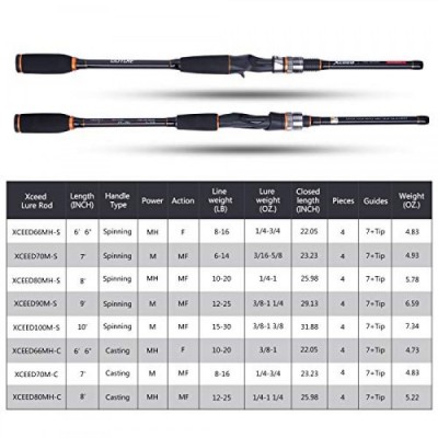 Goture 여행용 낚싯대, 케이스/가방이 포함된 4피스 낚싯대, 서핑 캐스팅/스피닝 로드, 바닷물 송어, 배스, 월아이, 파이크용 초경량 낚시 베이트캐스팅 로드 7피트