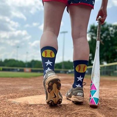 ChalkTalkSPORTS 소프트볼 운동용 종아리 중간 양말 | 미국 애국 소프트볼 | 청소년 및 성인 사이즈