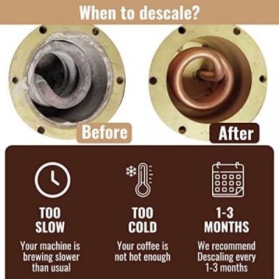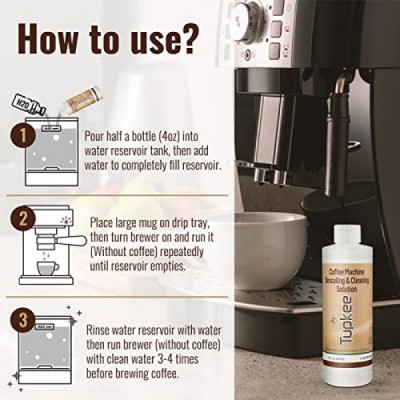 Tupkee 커피 머신 디스케일링 솔루션 - 미국산 - 병당 2회 사용 - Keurig 커피 머신, Nespresso, Breville, Delonghi용 범용 청소 디스케일러 모든 일회용 커피 메이커