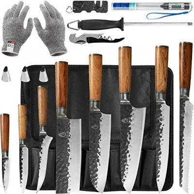 FULLHI 14pcs 정육점 요리사 칼 세트에는 칼집이 포함됩니다. 고 탄소강 식칼 주방 칼 전체 당나라 야채 식칼 홈 바베큐 캠핑 칼 가방, 고기 온도계