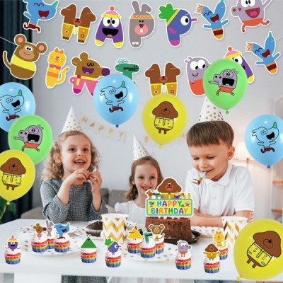 IFHDO 만화 생일 풍선 세트 32pcs Hey Duggee 생일 용품 케이크 토퍼 컵케익 토퍼, 생일 파티 장식용 배너 풍선 포함
