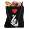 K-Pop 핑거 하트 손 기호 Korean Pop - 블랙 토트백 K-Pop 핑거 하트 손 기호 Korean Pop - 블랙 토트백